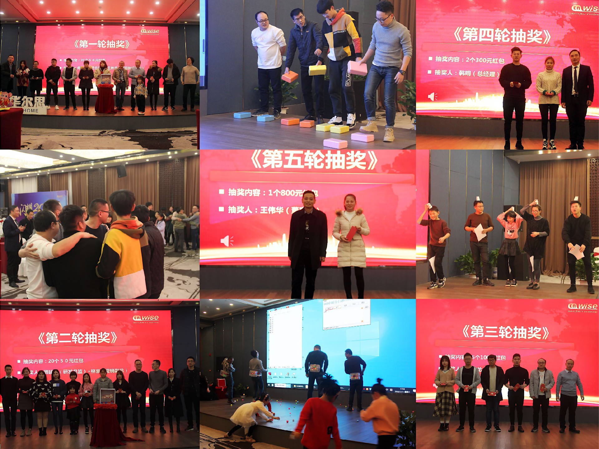 頒發(fā)了優(yōu)秀員工評獎(jiǎng)后又到了幸運(yùn)抽獎(jiǎng)環(huán)節(jié)。一個(gè)個(gè)的幸運(yùn)兒領(lǐng)到了大紅包獎(jiǎng)勵(lì)。中獎(jiǎng)率也是達(dá)到有史以來高比例88%。接下來游戲來啦:《桃花朵朵開》《摸石頭過河》《一圈到底》《抖球》《阿凡提趕集》《猜歌名抽紅包》。得到獎(jiǎng)品的已經(jīng)滿心歡喜。沒有得到獎(jiǎng)品的也已經(jīng)攢足了氣大干2020年。